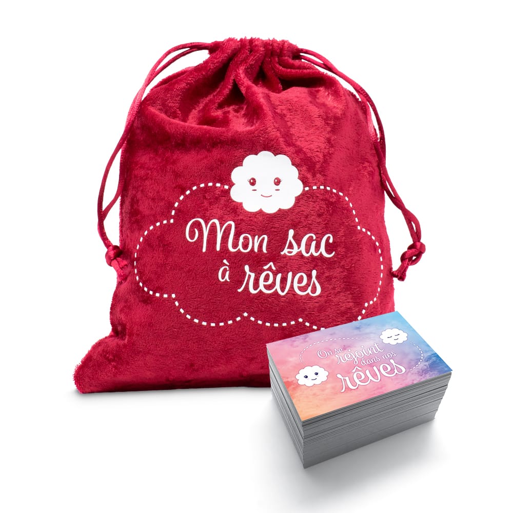 - Avant le dodo, l’enfant termine sa routine en pigeant une carte dans le sac, qui révélera le lieu où son parent et lui se rejoindront dans un rêve. À l’aide de son parent, il lit la phrase qui figure sur la carte. Puis c’est le temps de laisser place à la créativité en imaginant ensemble les paysages, les animaux, les bâtiments, les vêtements, etc., selon la destination pigée. Il n’y a aucune limite à l’imagination! Et quand c’est rigolo, c’est encore mieux!